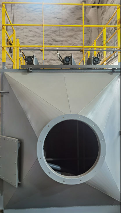 (4)除雾主管道 2800×2800 除雾管道均采用圆形卷焊钢管,设计有清灰人孔,系统风速不大于15m/s。考虑到除雾管道的热胀冷缩,在适当位置应加设软性伸缩节。