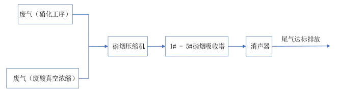 某公司在硝化过程及废酸真空浓缩处置过程中产生的废气主要污染因子为氮氧化物及其它特征污染物,拟通过新建硝烟加压吸收装置进行处理。